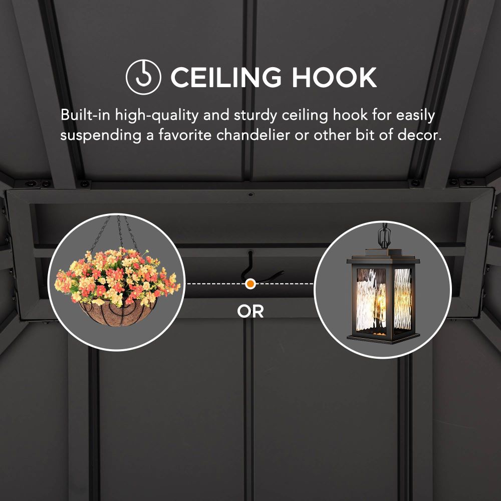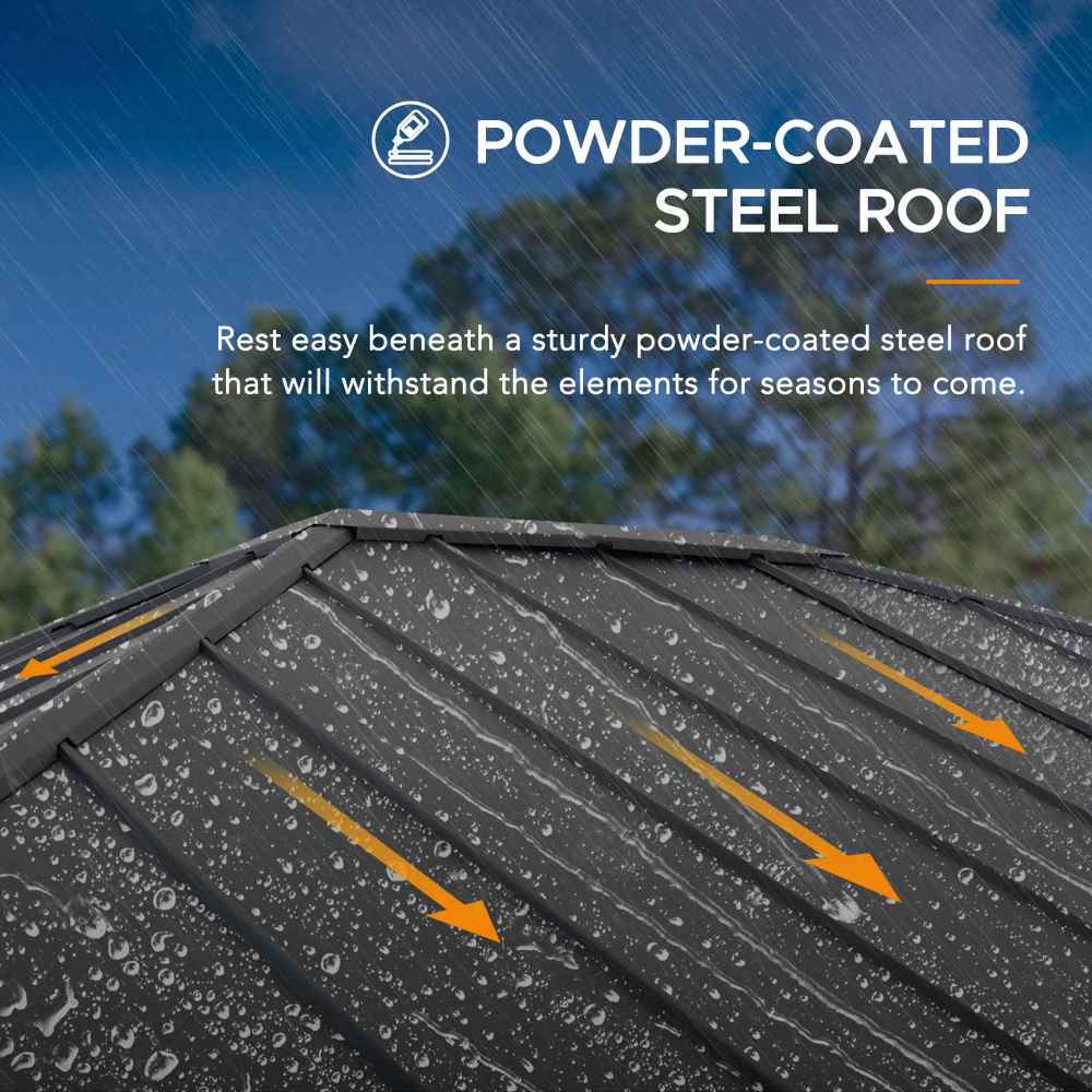 Construction robuste et stable : ce magnifique gazebo à toit rigide est un ajout parfait à divers espaces de vie extérieurs, tels que les patios, les terrasses, les arrière-cours, les jardins, les piscines, les pelouses, etc.