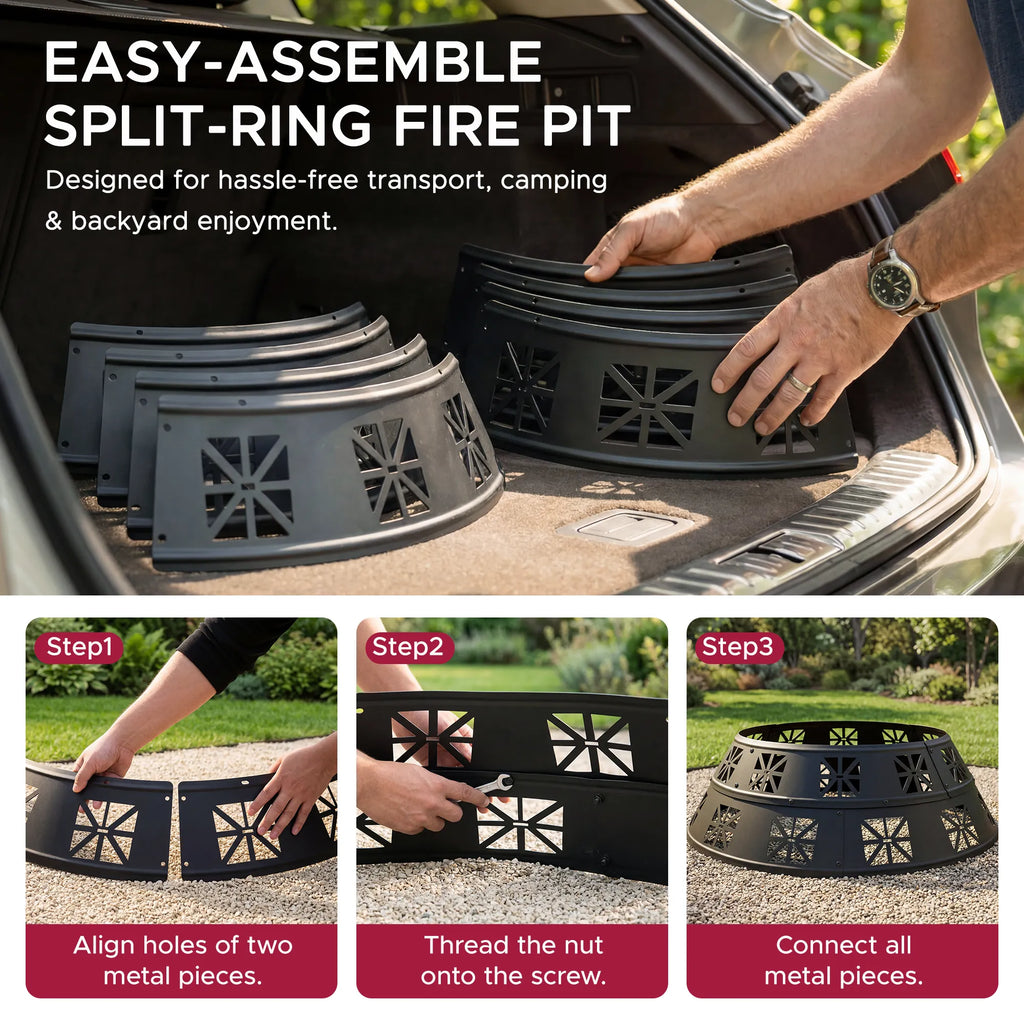 - Sectional Assembly for Easy Transport & Outdoor Use: Constructed with a multi-piece sectional design, this fire pit ring breaks down easily for transport and storage. Ideal for camping, backyard fires, patios, and bonfire gatherings, it offers excellent portability without sacrificing strength or stability.