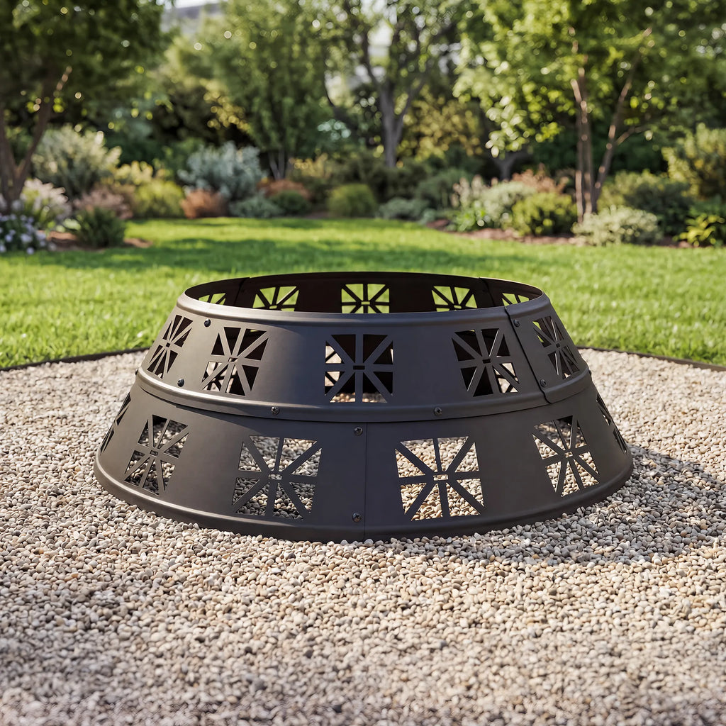 The decorative cutout design allows light and heat to radiate beautifully, creating a cozy atmosphere perfect for backyard gatherings, patio relaxation, or camping nights. Built from heavy-duty steel and finished with a high-temperature powder coating, this fire ring is engineered to endure intense heat and outdoor conditions.