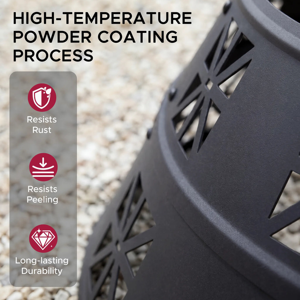 - High-Temperature Powder-Coated Finish: Finished with a high-heat resistant black powder coating, the fire ring resists rust, corrosion, and heat damage, making it suitable for year-round outdoor use in various weather conditions.