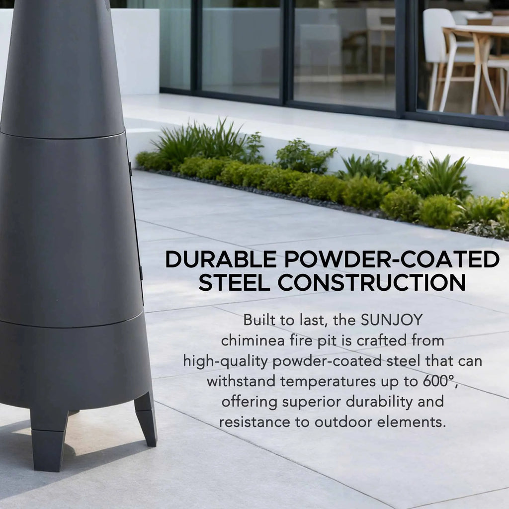 Durable Powder-Coated Steel Construction: Built to last, the SUNJOY chiminea fire pit is crafted from high-quality powder-coated steel that can withstand temperatures up to 600°, offering superior durability and resistance to outdoor elements.