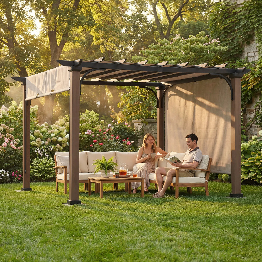- Durable Powder-Coated Steel Frame: Built to last, this outdoor pergola features a powder-coated steel frame that offers strength and stability, providing year-round shelter for your outdoor space.