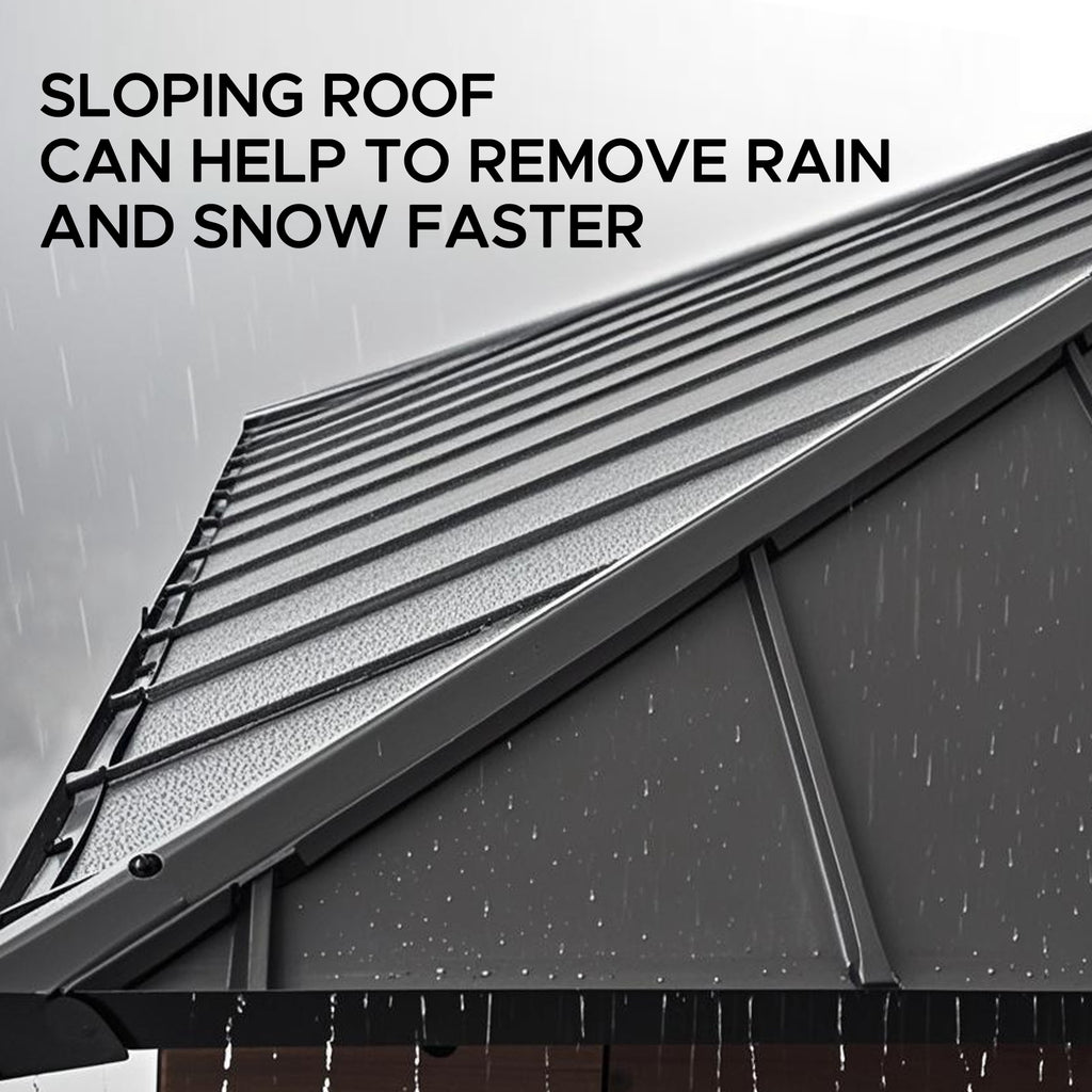 Ventilated 2-Tier Roof Design: The ventilated 2-tier steel and polycarbonate top provides safety from harmful UV rays while allowing wind to pass through freely, encouraging air circulation, and creating a comfortable and open outdoor space for your enjoyment.