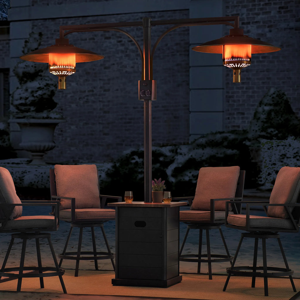 - Durable and Stable Base: This patio heater is made of premium powder-coated steel for long-lasting use. The heavy-duty (172 lbs.) square side table design of the base adds stability and durability to the unit.